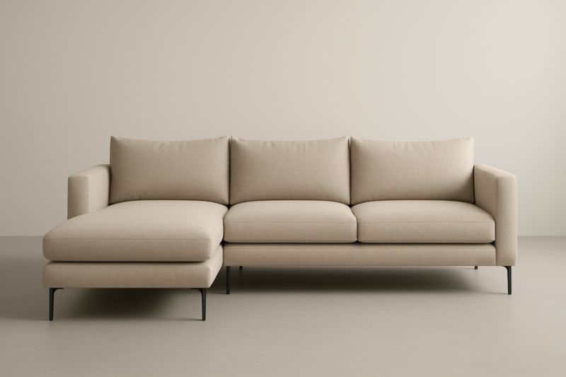 Divano ad Angolo in Tessuto Poliestere Beige con Gambe in Acciaio