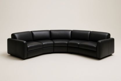 Divano Componibile Angolare Curvo in Pelle Nera, 5 Posti