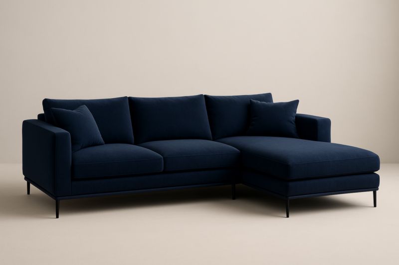 Divano Componibile Angolare in Tessuto Poliestere con Chaise Longue e Gambe in Acciaio