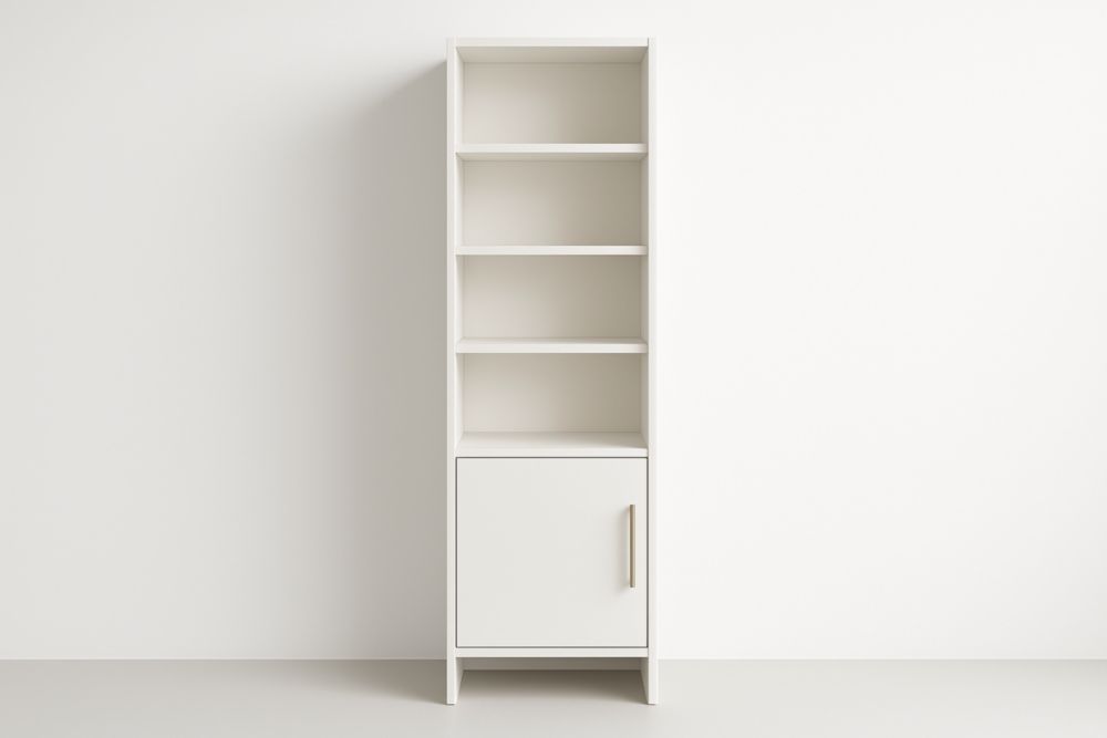 Libreria alta con scaffali e anta in pannello di particelle bianco 180x60x30 cm