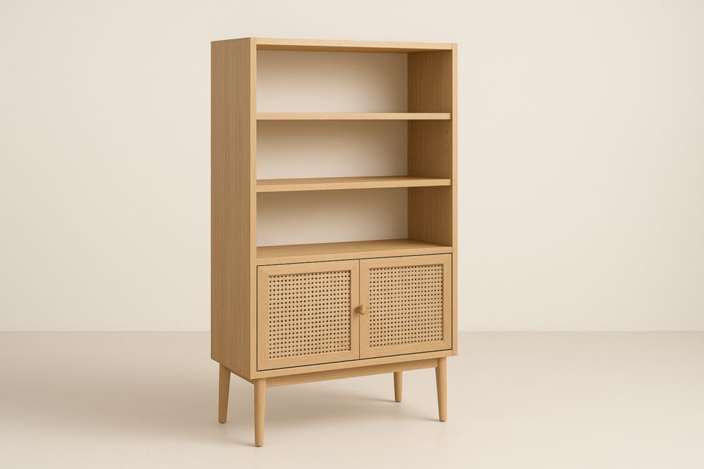 Libreria in Legno di rovere con Porta Intrecciata a Due Ante